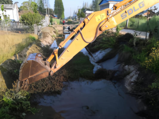 双洲村对淤积水面进行活水清淤