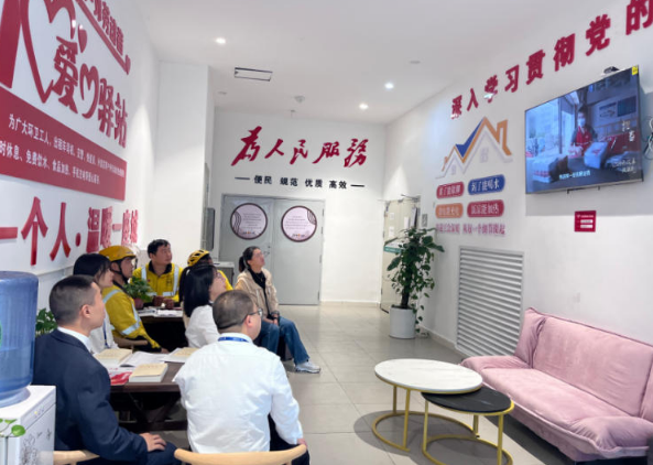 外卖小哥等户外劳动者在红色驿站学习交流