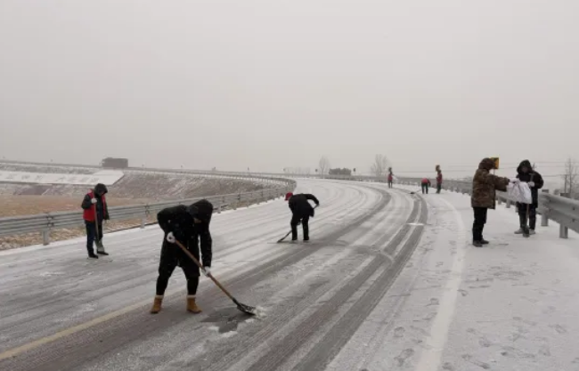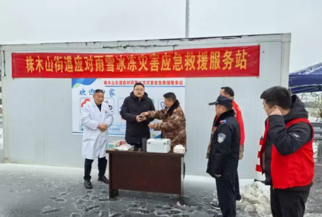在高速口株木山街道还设立应急救援服务点,党员志愿者为滞留司机、过往旅客提供热水、姜茶、应急药品、充电和路线咨询服务。“雪天滞留在高速口,没想到有热水喝、有热姜茶暖身,太贴心了!”司机李先生点赞道。不少过往群众自发加入清雪队伍,与党员干部并肩作战,凝聚起共治合力。经过连续奋战,高速口匝道及连接线等重点区域积雪结冰全部清理完毕,道路恢复畅通有序。