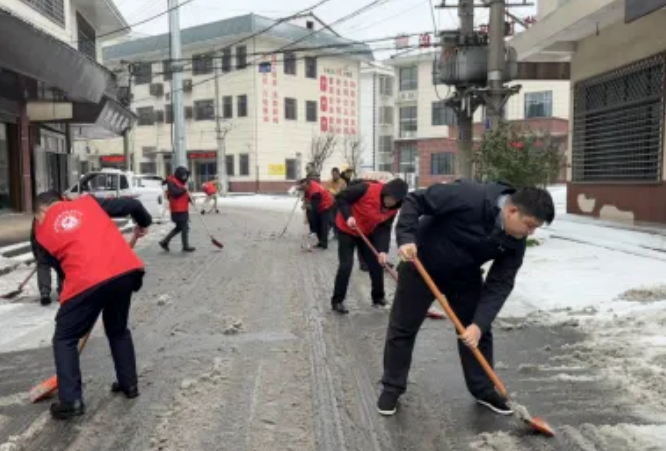 坚持行动在前。1月20日中午,60余名镇机关干部、党员志愿者开展集中清雪除冰行动。扫雪队伍顶着寒风,对学校周边、干道交叉口等8处人车流量大的区域进行全力清扫。经过数小时奋战,路面积雪暗冰基本清除,确保了道路安全畅通。