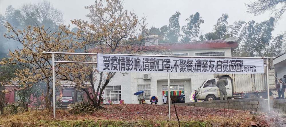 3月3日上午,崔家桥镇疫情防控指挥部和村干部一行赶到了刘秋生的家中,查看了丧事的情况,对现场人员进行了疏散劝导,此外,指挥部还带来了一份特殊的礼物:一条横幅,内容是:受疫情影响,请戴口罩,不聚餐,自觉返回!落款是:和平村宣。看到横幅,前来吊唁的人不再需要解释和劝导,简单的磕头,拜别,前后不到三分钟,整个丧事井然、有序、无聚集,且人人都佩戴好口罩,没有的,也免费发放一个!吊唁的人竖起了大拇指,刘秋生的儿子竖起了大拇指。
