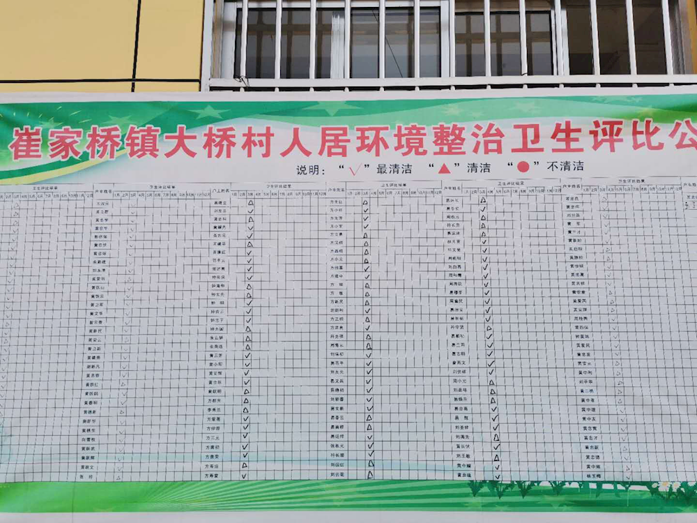 4月8日至10日,崔家桥镇党委书记罗喜美带队,组织全体党政班子成员及部分站所长,对崔家桥镇22个村(社区)3月份人居环境整治活动整治成效进行考核验收,本次考核22个村(社区)以统一标准,对照《崔家桥镇人居环境整治活动月工作方案》中的大面保洁、牛皮癣清理、庭院整治、村庄绿化、评比考核五项重点工作要求进行了评比打分。